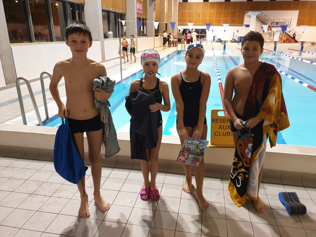 Petite photo de nos 4 nageurs présents sur la 1ère compétition du Challenge Avenirs à Bourg-en-Bresse. Ils ont réussi toutes les 3 nages au programme de ce samedi 16/11. Bravo Lola, Manel, Mikail et Paul !