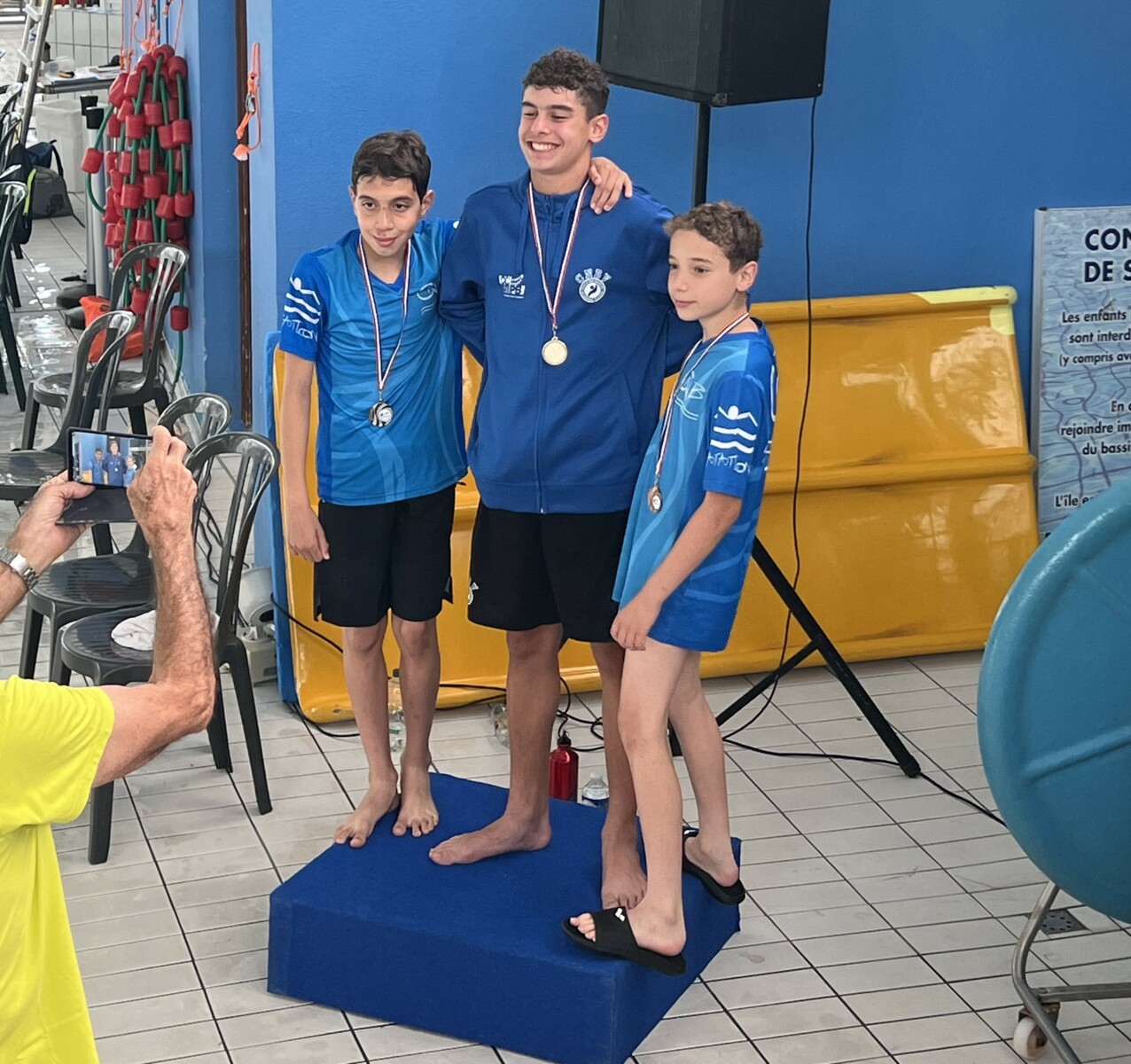 Légende photo : le podium de Matteo MAMMINO médaille d’or au 50 Brasse