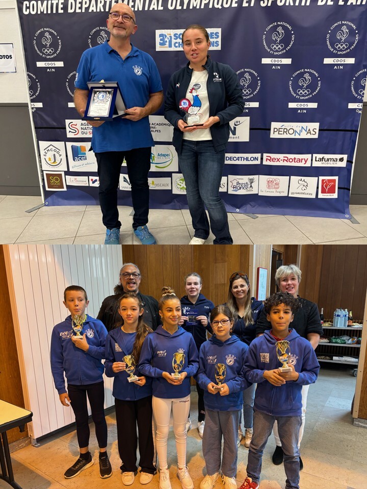 Tout d’abord, la remise de récompense à deux membres du CNBV lors de la Soirée des Champions de l’Ain du CDOS 01 du 10/10 à Péronnas. Sur la photo du dessus, Dominique Haab pour ses nombreuses années de bénévole et Manon Haab pour ses 3 titres de Championne de France Handisport de la saison passée. Et quant à la photo du dessous, 10 nageurs du CNBV ont reçu une récompense pour leurs bonnes performances : Zélie Rebucini, Ayem Bouteldja, Mathilda Denis Lamouille, Elias Peutin Butter, Louise Debove, Lina Aouad, Isaure D’Argent, Alexia Wilhelm et Manon Haab.